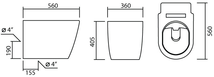 ระยะท่อลงพื้น 155 มม. หรือระยะท่อเข้าผนัง 190 มม.